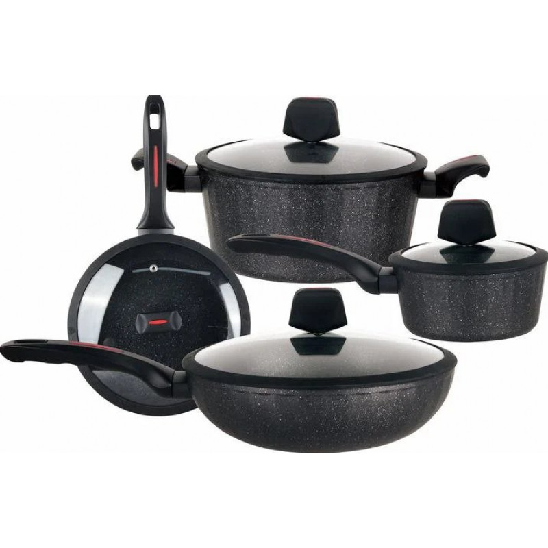 Набір кухонного посуду Edenberg EB-12916 — полный набор для оснащения современной кухни. Качественные материалы и антипригарное покрытие для лёгкого приготовления. Равномерный нагрев дна предотвращает пригорание. Стеклянные крышки сохраняют тепло и аромат. Эргономичные ручки удобны и безопасны.