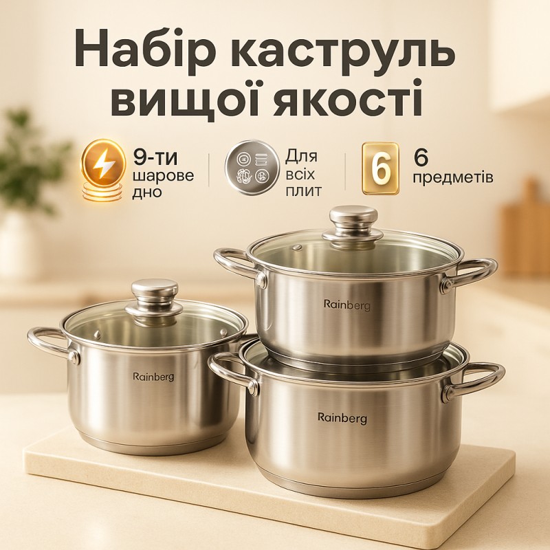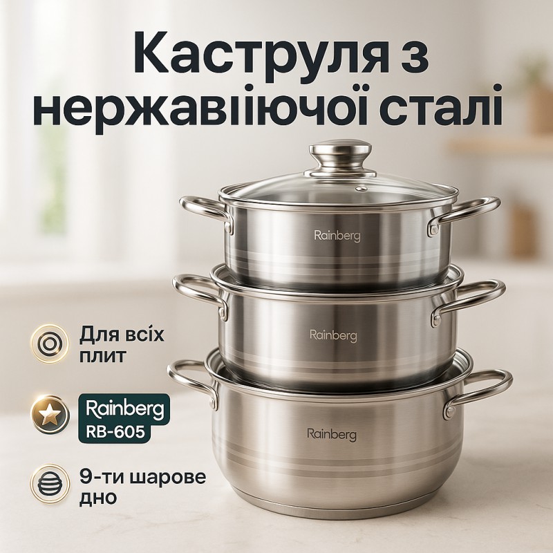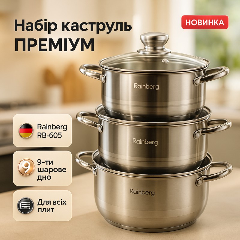 | Название | Набор кастрюль Rainberg RB-605 капсульное 9-ти слойное дно |