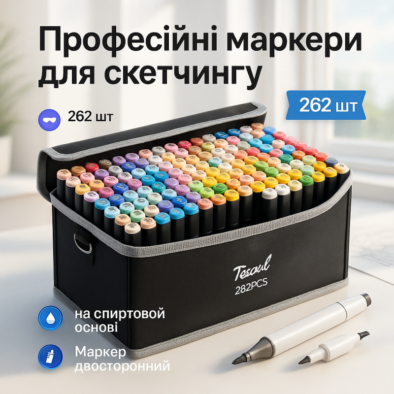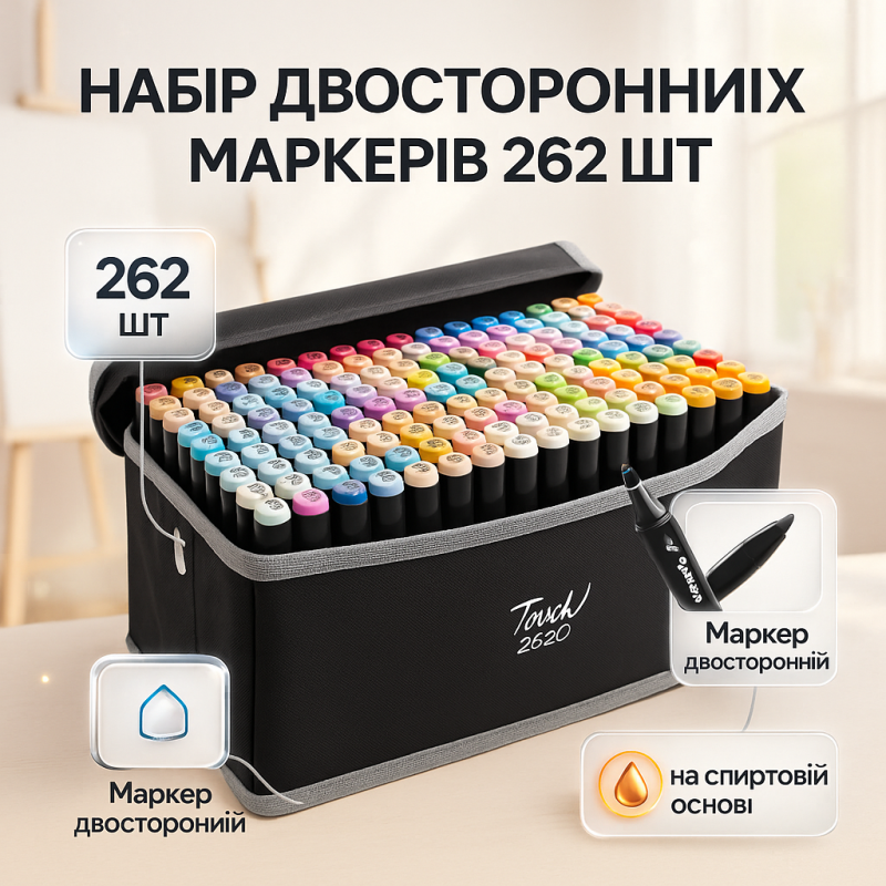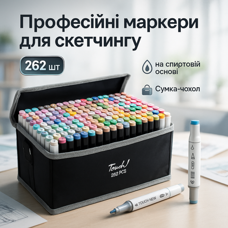 | Название | Набор скетч маркеров для рисования Touch 262 шт двусторонние профессиональные фломастеры с чехлом |
