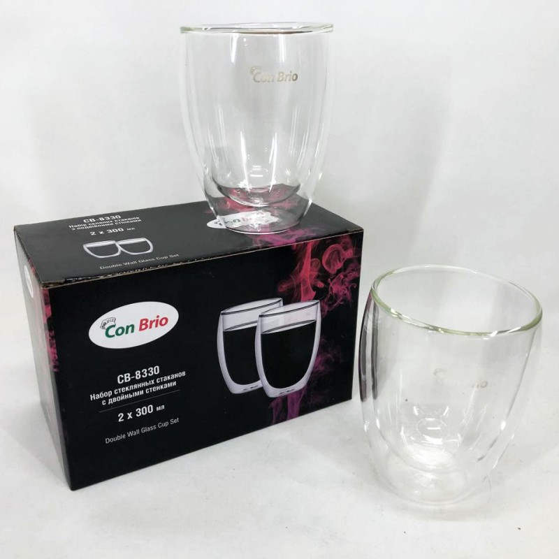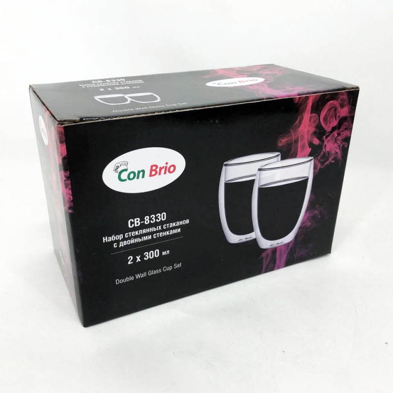 | Название | Набор стаканов с двойным дном Con Brio CB-8330-2 300 мл 2 шт, прозрачные чашки с двойными стенками |