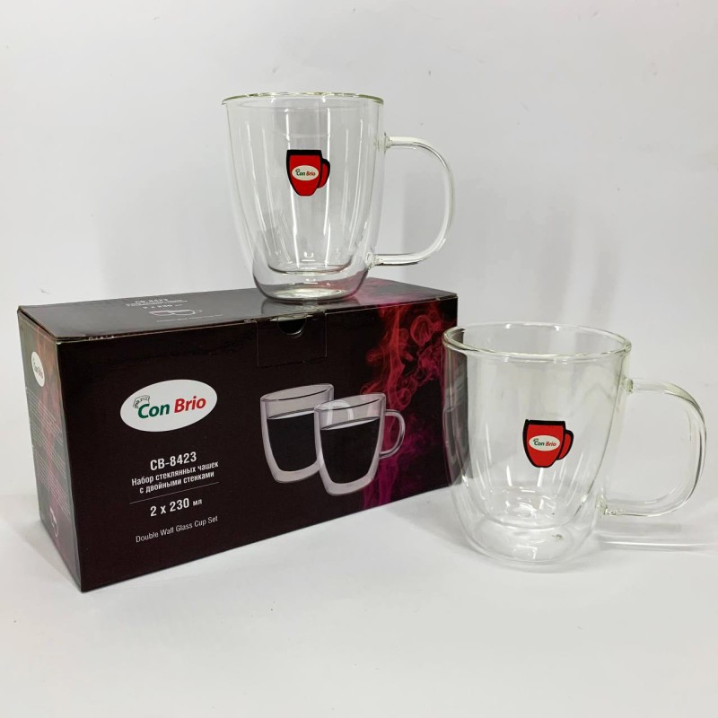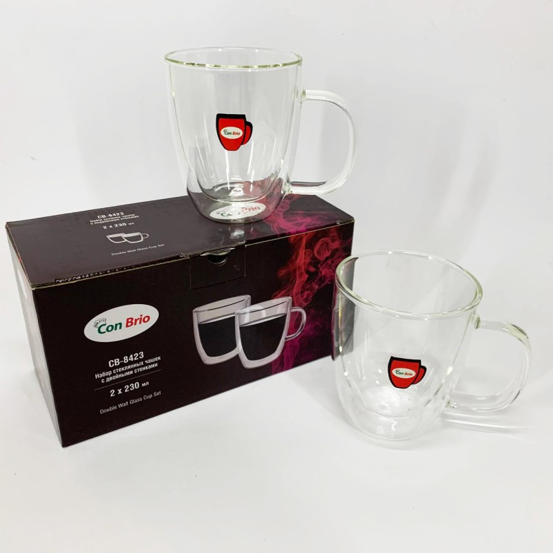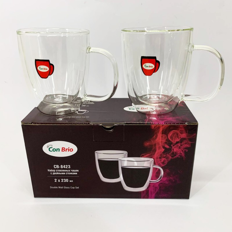 Набор стеклянных чашек с двойными стенками Con Brio CB-8423-2, 2шт, 230мл, Прозрачные чашки можно заказать в интернет-магазине Shtyrman. Перед покупкой проверьте модель, производителя, наличие и характеристики.