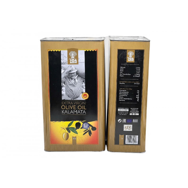 Оливковое масло HDA Kalamata Extra Virgin 5 л. Греческое масло первого холодного отжима (железная канистра)