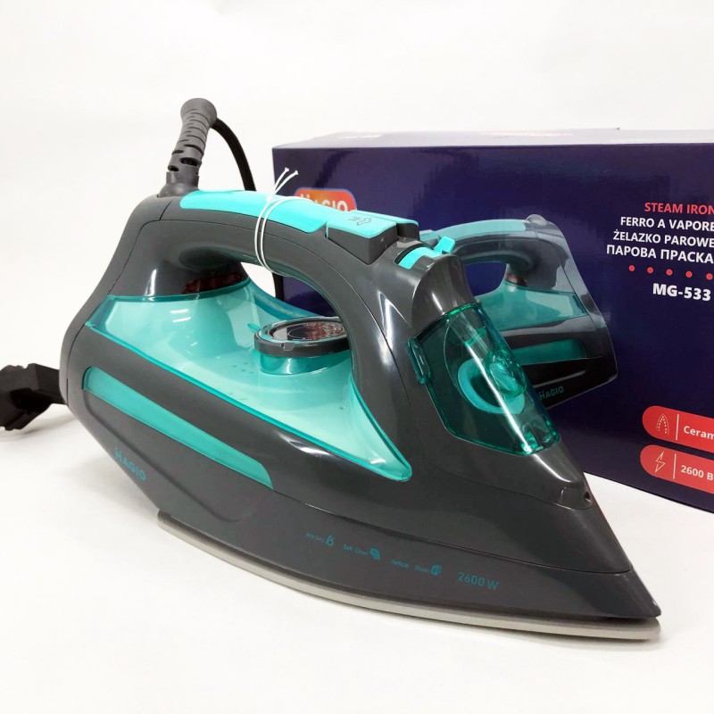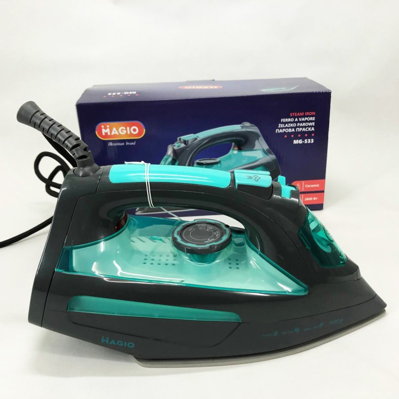 Утюг Magio MG-533 — это надежный и функциональный прибор для легкой и быстрой глажки разнообразных тканей. Его современный дизайн в сочетании с эргономичной формой и удобным управлением делают процесс глажки максимально комфортным и эффективным. Этот паровой утюг обеспечит аккуратный и качественный уход за вашей одеждой, придавая вещам опрятный и ухоженный вид без лишних усилий.