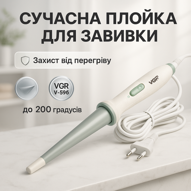 | Название | Плойка конусная VGR V-596 стайлер для завивки волос профессиональная плойка с керамическим покрытием |