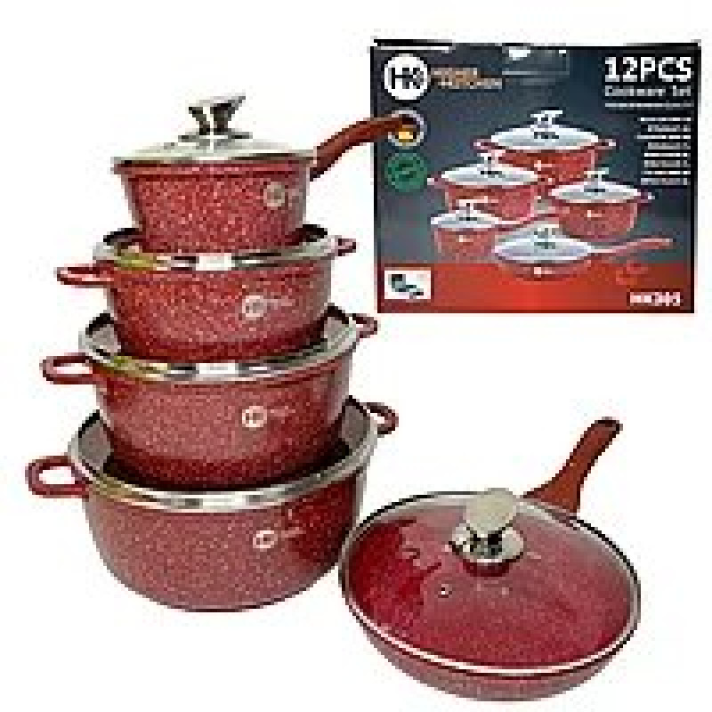Набір казанів Higher Kitchen HK-324 10 предметів, сковорода з гранітним антипригарним покриттям