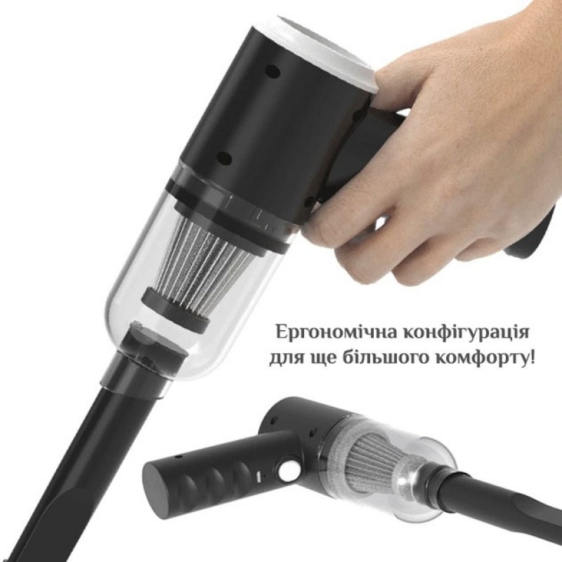 Поставляется с комплектом из трёх насадок и съемным фильтром, он станет незаменимым помощником в поддержании идеальной чистоты в салоне вашего авто, или труднодоступных мест в вашем доме.