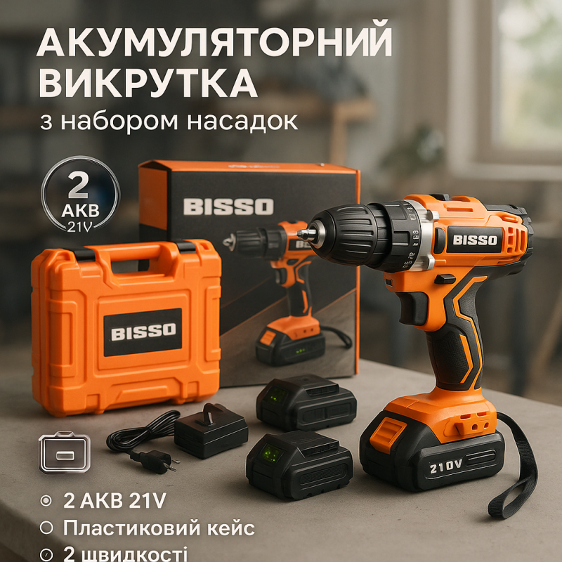 НазваниеШуруповерт аккумуляторный в чемодане BISSO B6008 21V