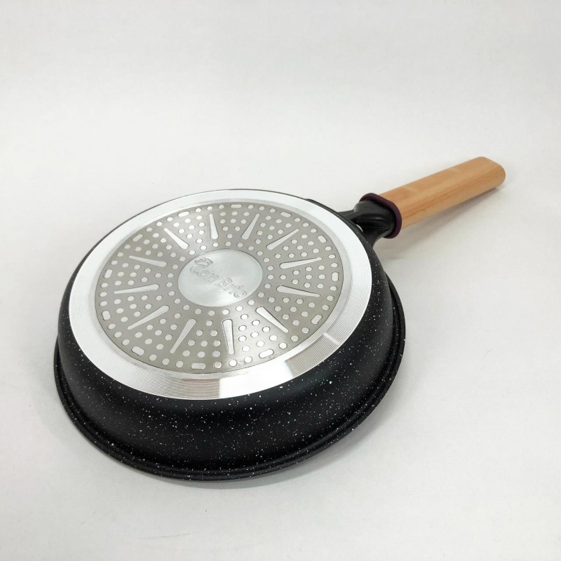 Ця сковорода стане незамінним помічником для домогосподарок, професійних кухарів та тих, хто прагне здорового та швидкого приготування страв. Вона ідеальна для смаження м'яса, овочів, яєць та інших продуктів без додавання великої кількості олії. Завдяки універсальному індукційному дну використання доступне на будь-яких кухонних плитах, що робить її практичним вибором для різних кухонь – від домашньої до професійної. Натуральна дерев’яна ручка надає привабливий вигляд і забезпечує безпеку в процесі приготування.