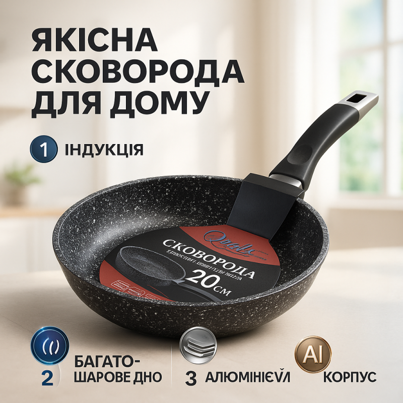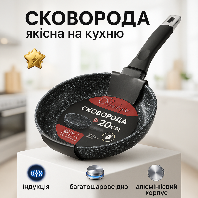 | Название | Сковорода UNIQUE UN-5102 20 см. без крышки, светлый гранит. Антипригарная с бакелитовой ручкой |