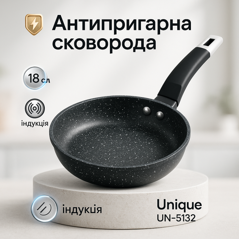 | Название | Сковорода Unique UN-5132 18 см с гранитным антипригарным покрытием, Антипригарная сковорода глубокая |