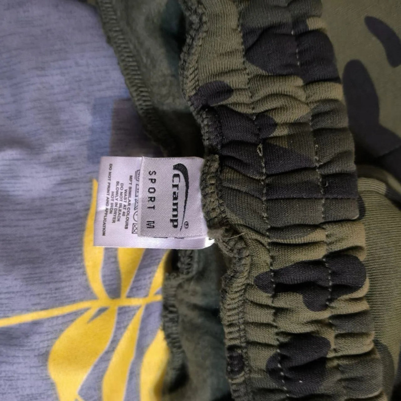 Удобные и теплые мужские спортивные штаны в популярной расцветке "камуфляж" (милитари). Эта модель идеально подходит для осенне-зимнего сезона благодаря плотному утеплителю (флис/начес) внутри. Они станут незаменимы для повседневной носки, активного отдыха на природе, прогулок или поездок на рыбалку. Штаны пошиты из высококачественной турецкой ткани с высоким содержанием хлопка (73%), что позволяет телу дышать, а добавление полиэстера и лайкры обеспечивает прочность изделия и сохранение формы после стирок. Эластичный пояс на шнуровке гарантирует удобную посадку на любую фигуру, а манжеты внизу штанин защищают от задувания ветра и сохраняют тепло. Особое преимущество модели — карманы на молнии, благодаря которым телефон, ключи или кошелек будут в полной безопасности во время движения. Стильный камуфляжный принт не только модно выглядит, но и очень практичен в использовании, так как на нем менее заметны загрязнения. Характеристики: Тип изделия: Спортивные штаны / Джоггеры Материал: Трикотаж на флисе (73% хлопок, 22% полиэстер, 5% лайкра) Сезон: Зима / Холодная осень Цвет: Камуфляж (Хаки/Зеленый) Особенности: Карманы на молнии, пояс на шнурке, манжеты Страна производитель: Турция (Cramp)