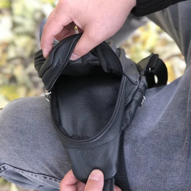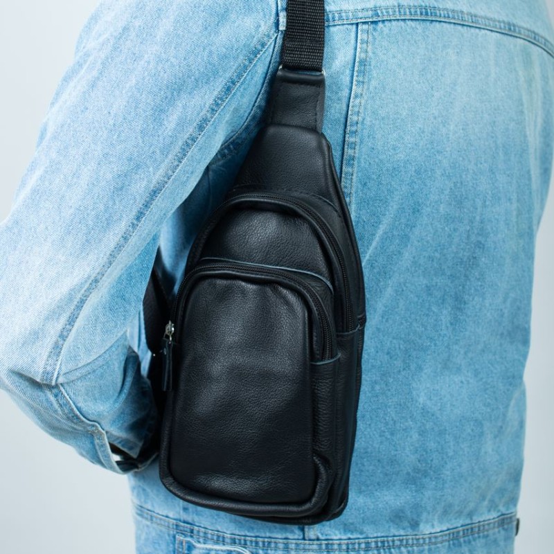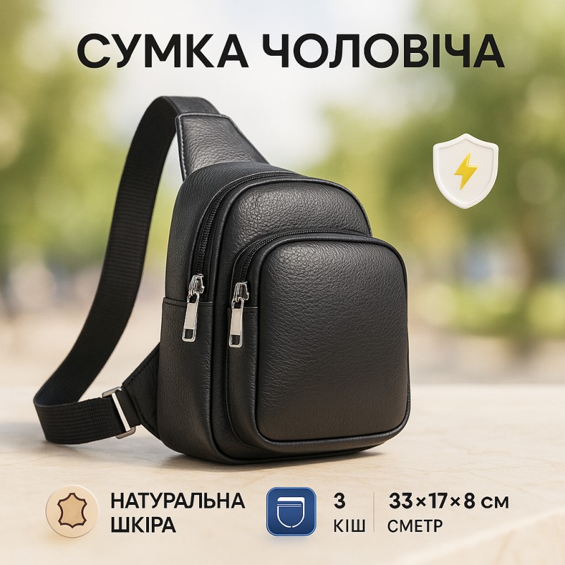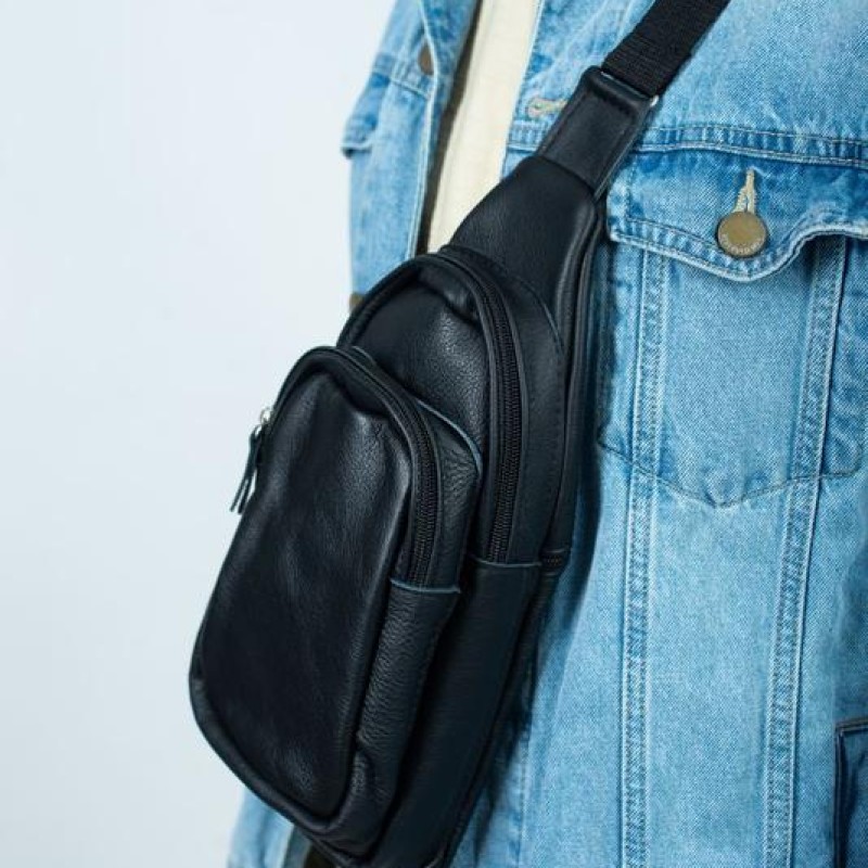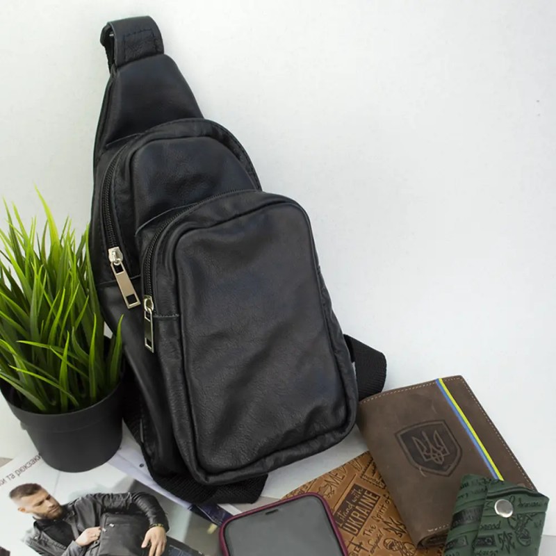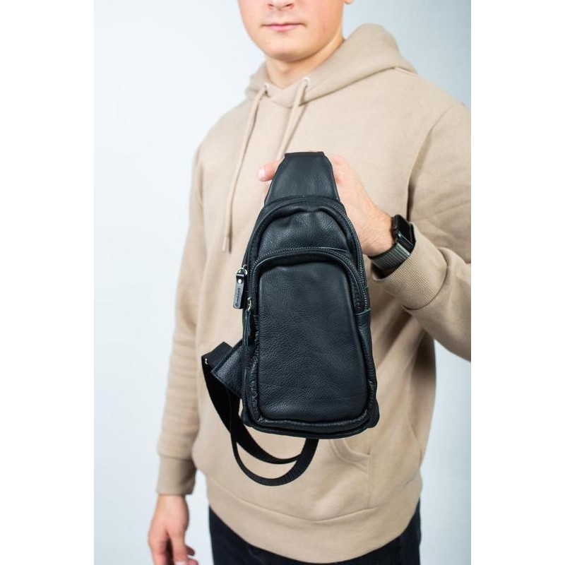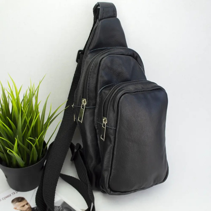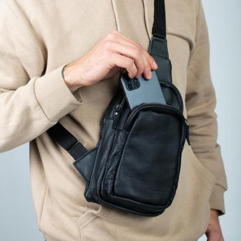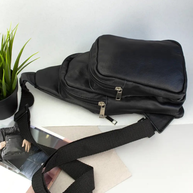 | Название | Стильная мужская сумка - бананка, слинг нагрудная из натуральной кожи на молнии чёрная |