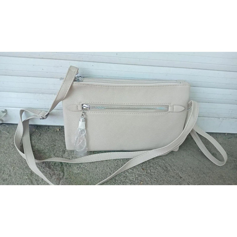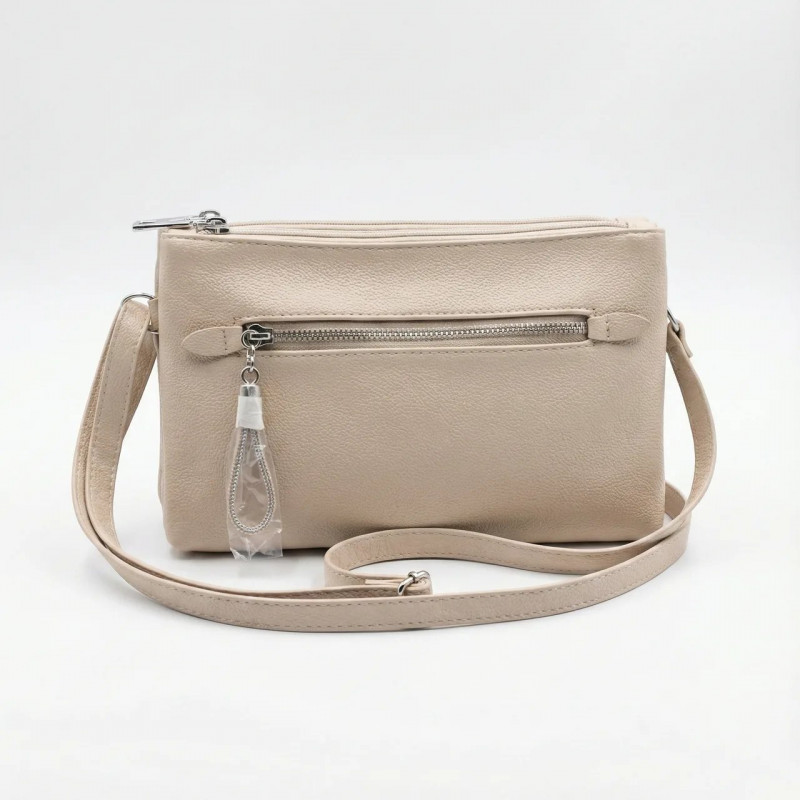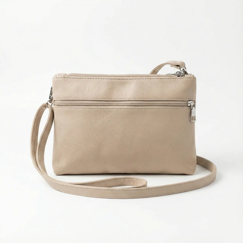 Сумка женская через плечо бежевая, маленькая сумочка-клатч на 3 отделения кросс-боди светлая