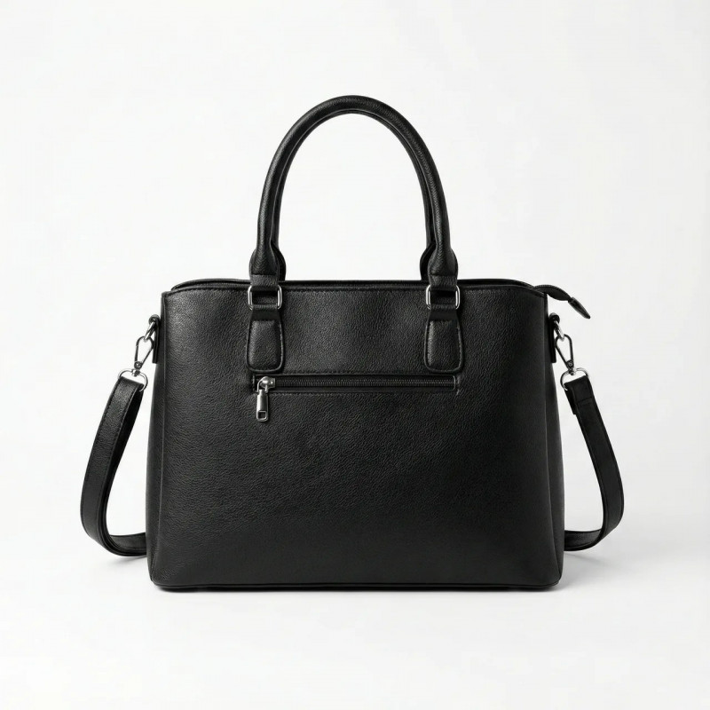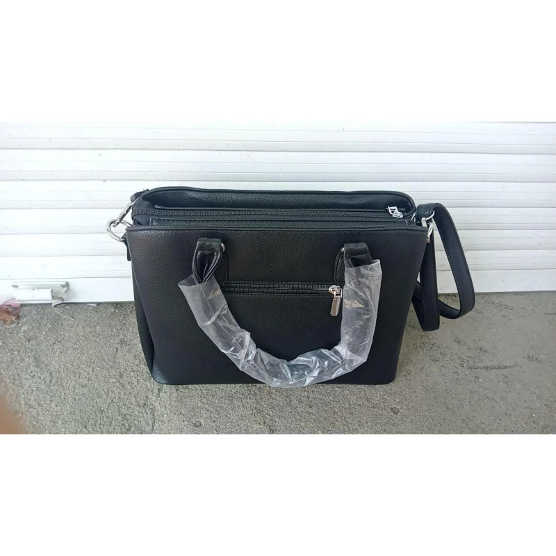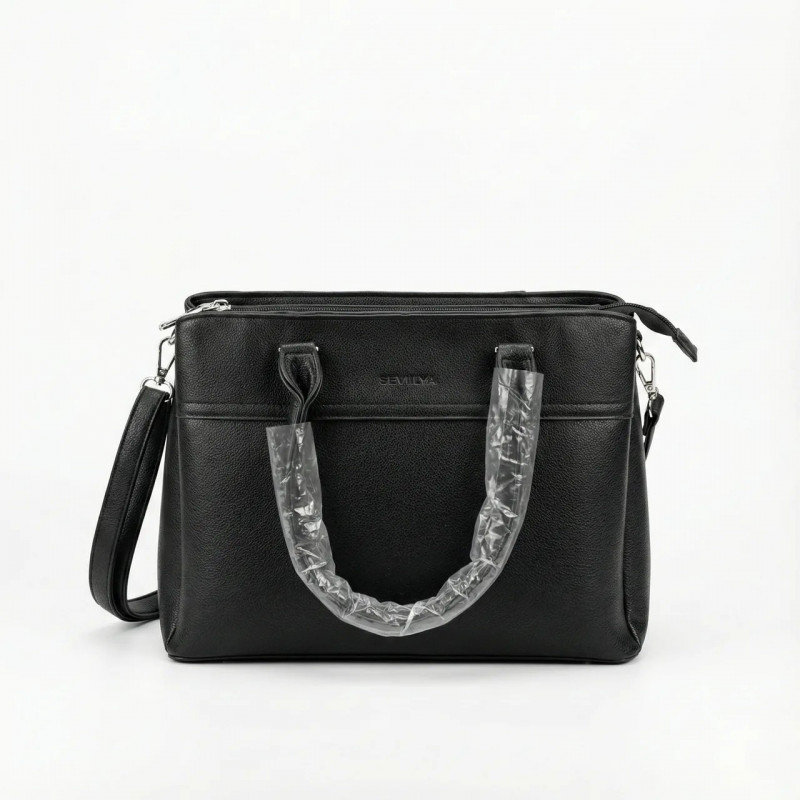 Эта элегантная черная сумка бренда Sevilya создана для женщин, предпочитающих деловой стиль и четкие линии. Каркасная форма позволяет сумке идеально сохранять свой вид даже когда она пуста, а текстурная эко-кожа придает ей презентабельность и защищает от царапин. Главное преимущество этой модели — тройная организация пространства. Сумка имеет три полноценных отделения, каждое из которых закрывается на отдельную надежную молнию. Это позволяет идеально рассортировать вещи: рабочие документы отдельно, косметику отдельно, а личные вещи (кошелек, телефон) — в третьем отсеке. Лаконичный дизайн дополнен серебристым логотипом на фасаде. Удобные закругленные ручки позволяют носить сумку в руке или на локте, а длинный ремешок в комплекте дает возможность повесить ее на плечо. На тыльной стороне есть карман на молнии для быстрого доступа. Характеристики: Материал: Качественная эко-кожа (держит форму) Цвет: Черный (Black) Тип: Каркасная / Деловая Количество отделений: 3 отдельных на молниях Особенности: Логотип Sevilya, жесткое дно Комплектация: Длинный плечевой ремень Стиль: Классический / Офисный