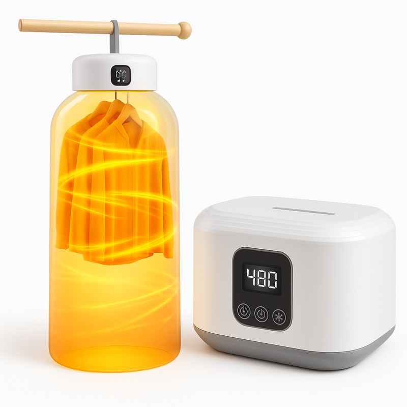 Портативная сушилка для сушки одежды, всесторонняя сушка разнообразных материалов и даже такой одежды как верхняя одежда, детская одежда и тому подобное. Подходит для использования в семье, общежитии, гостинице. Трехмерная сушка при постоянной температуре 60°, всесторонняя сушка одежды. Ткань остается мягкой и не помятой. В сложенном виде, сушилка имеет компактный размер. Ультрафиолетовая стерилизация, уровень которой достигает 99%. Ее легко хранить где угодно и перевозить с собой куда угодно и экономить место