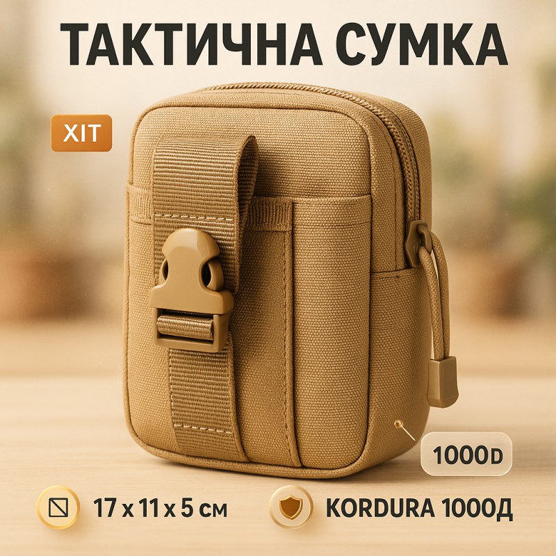 | Название | Тактическая сумка - подсумок для телефона, система MOLLE органайзер тактический из кордуры. Цвет: койот |