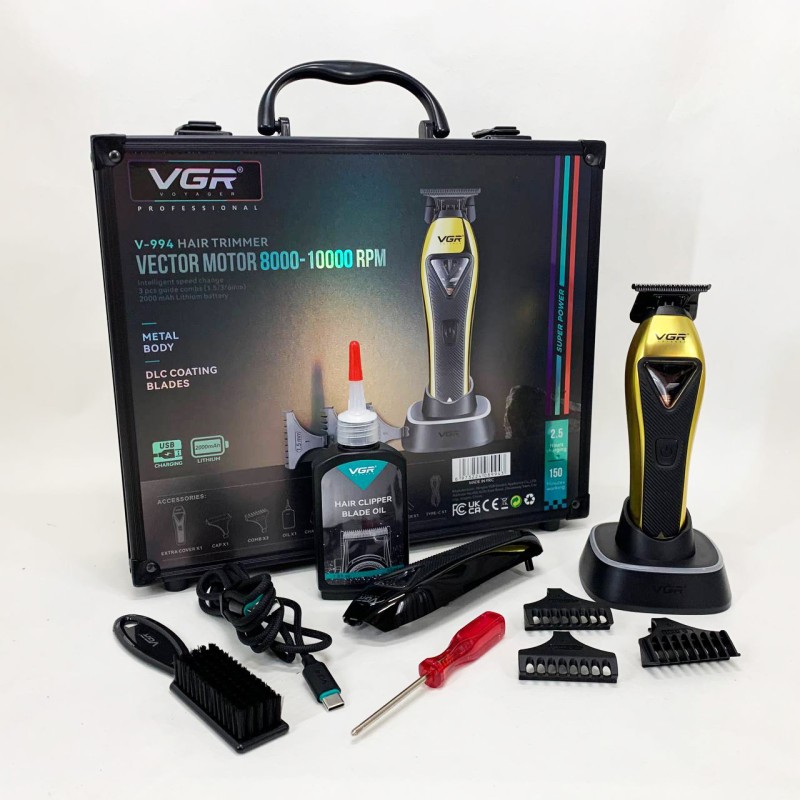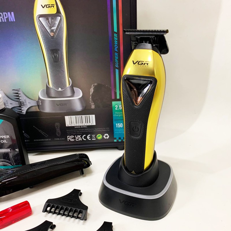 Профессиональный аккумуляторный триммер VGR V-994 с передовым мотором MAGLEV VECTOR 3.0 на магнитной левитации, обеспечивающим высокую скорость и долговечность. Идеален для стрижки волос, бороды и усов, а также для окантовки и детализации.