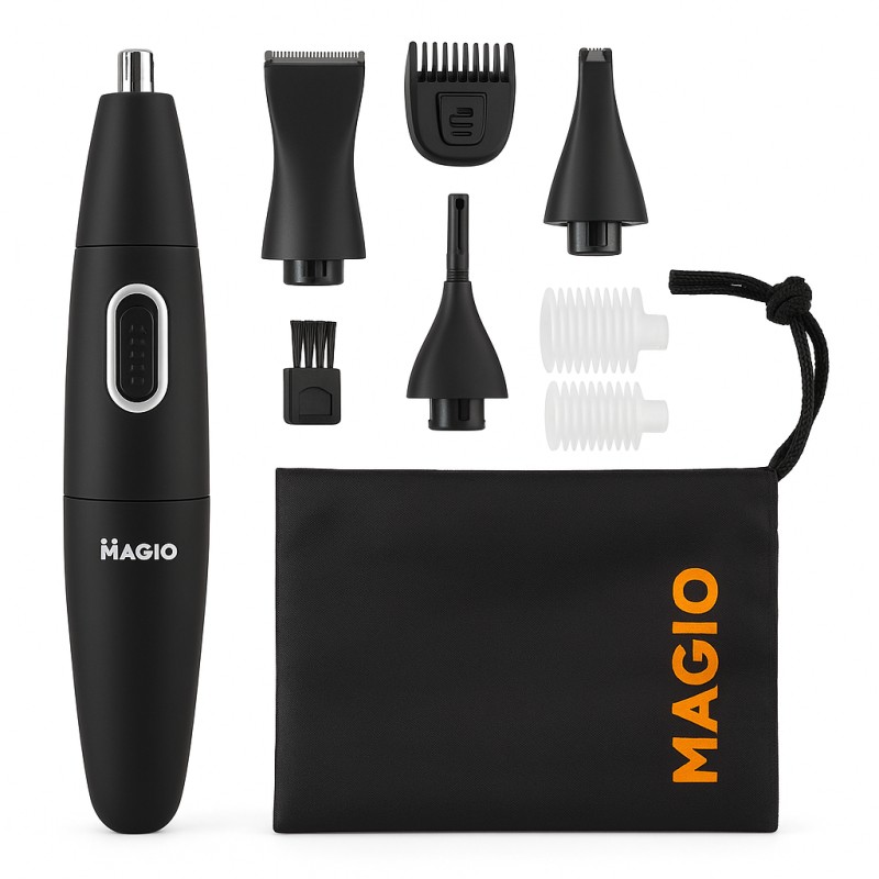 Универсальный триммер MG-913 имеет 4 насадки: насадка для стрижки в носу и ушах (1;5 мм). С помощью этой насадки можно быстро; безопасно и безболезненно удалить нежелательные волосы в носу и ушах. Абсолютно не повреждает нос и уши и их кожу. Совет – во избежание травмирования носа и барабанной перепонки не стоит устанавливать насадку в нос и ухо глубже 1 см.