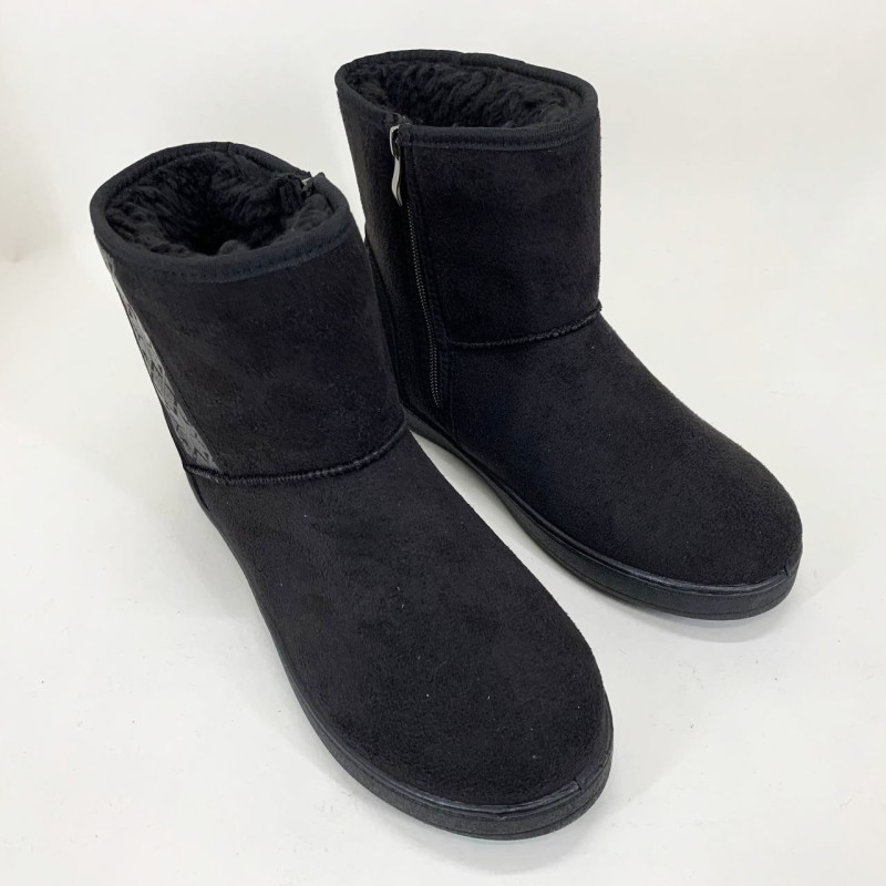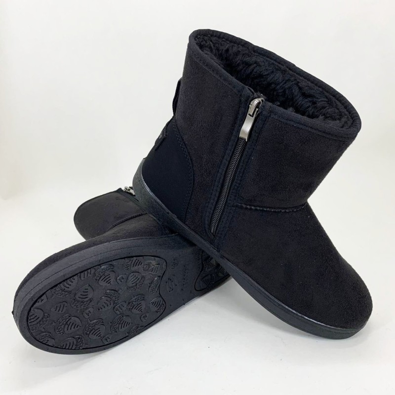 Внутри — приятный на ощупь мех, сохраняющий тепло даже в мороз. Плоская подошва с легким рельефом обеспечивает комфортное шествие по любому типу поверхности. Застежка-молния сбоку позволяет быстро обуваться. Эти угги – удачное решение для повседневного использования, прогулок или путешествий.