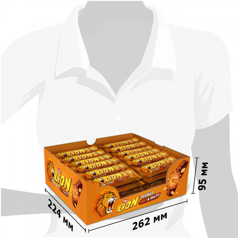 Тэги: батончики Lion, Lion с арахисом оптом, шоколадные батончики оптом, сладости для магазина, Lion 48 штук, батончики для бизнеса, купить Lion оптом