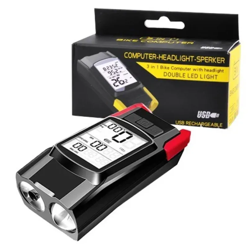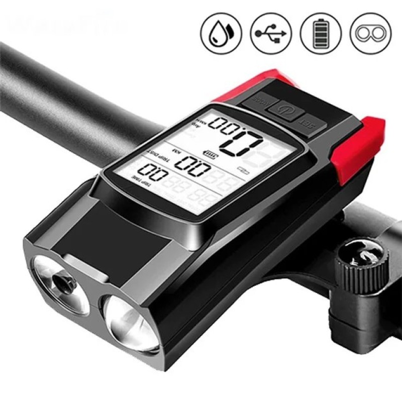 Велокомпьютер с фарой и звонком BK-1920-2T6 — это многофункциональное устройство, которое используется как велокомпьютер, и как звонок, и как фара. Возможность приобрести одно устройство вместо трех позволит не загромождать руль приборами и полностью обезопасить себя во время езды, а также следить за основными параметрами движения.