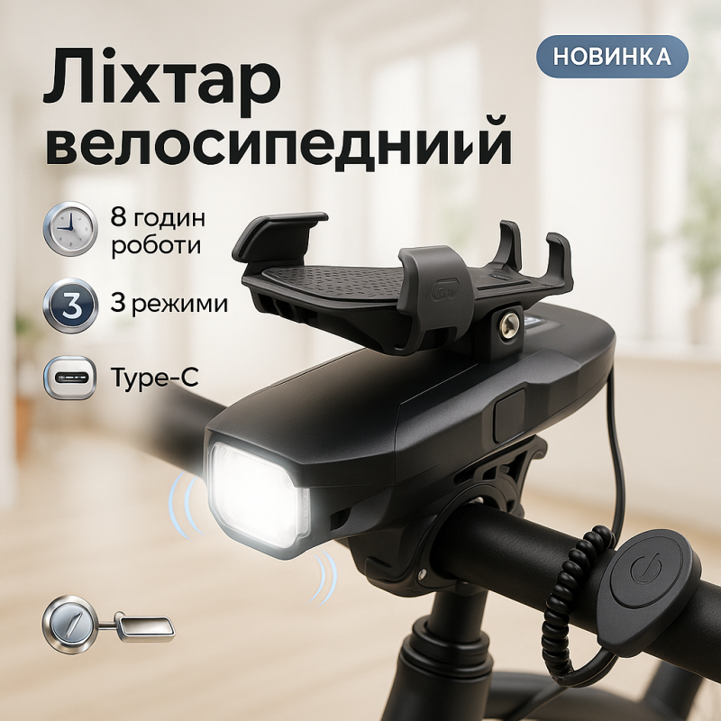 Велофонарь BG-1951/HJ-068 сочетает в себе освещение, защитный сигнал и держатель для телефона, что делает его универсальным аксессуаром для велосипедистов. Он обеспечивает безопасность и комфорт при езде как днём, так и ночью.