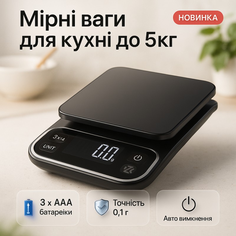 Електронні ваги X-1 — це точний і надійний інструмент для швидкого зважування продуктів та інгредієнтів з мінімальною похибкою. Завдяки точності вимірювання до 0,1 г ви зможете відміряти навіть найдрібніші дози, що особливо важливо для рецептів із складним балансом компонентів. Компактний корпус із поєднанням пластику та металу, великий яскравий дисплей і зручні функції роблять ці ваги універсальним прибором як для домашнього, так і професійного використання.