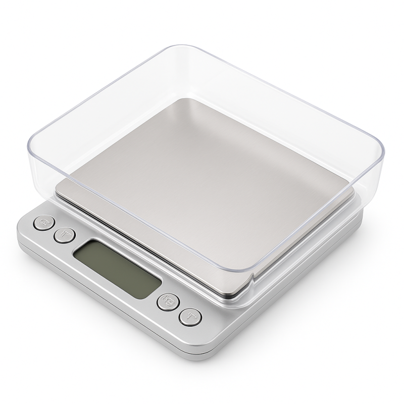- Комплектная чаша для удобной работы: В набор входит специальная чаша, которая идеально подходит для взвешивания сыпучих материалов, порошков, мелких деталей и драгоценных камней. Чаша предотвращает рассыпание материала и обеспечивает удобство при работе. Функция тарирования позволяет обнулить вес чаши и взвешивать только содержимое.