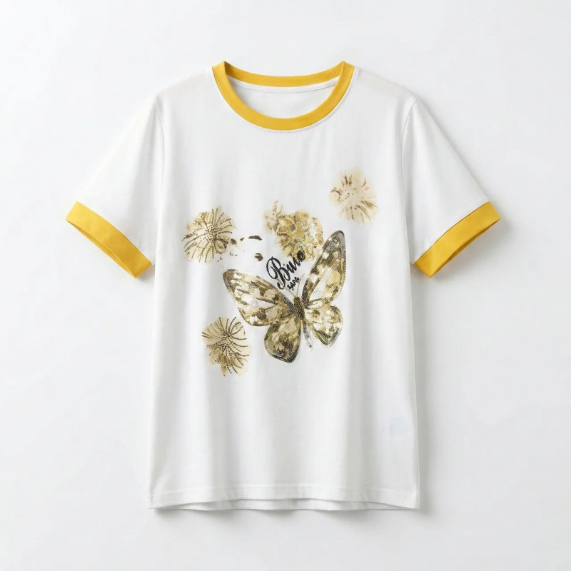 🛒 Ищете надежный товар? Вы можете купить Женская белая футболка с бабочкой и стразами, летняя кофта с желтым кантом, хлопковая футболка Rui Rui в нашем интернет-магазине Shtyrman. Гарантия качества и быстрая доставка по всей Украине!