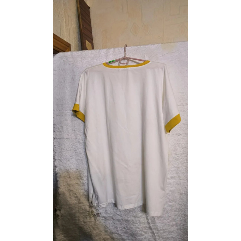 Яркая и свежая женская футболка, которая станет любимой вещью в вашем летнем гардеробе. Модель выполнена в белом цвете с контрастной желтой отделкой горловины и рукавов, что добавляет образу солнечного настроения. Центральным элементом дизайна является изысканный принт в виде золотистой бабочки и цветов, украшенный мерцающими стразами, которые красиво переливаются на солнце. Футболка имеет прямой свободный крой с небольшими разрезами по бокам, что обеспечивает идеальную посадку и комфорт в жару. Материал — легкий, дышащий трикотаж (преимущественно хлопок), приятный к телу и неприхотливый в уходе. Эта вещь отлично сочетается с джинсовыми шортами, белыми брюками или юбками, создавая легкий и романтичный образ. Характеристики: Производитель: Rui Rui Shop Тип изделия: Футболка Цвет: Белый с желтым кантом Декор: Принт "Бабочка", стразы Рукав: Короткий Сезон: Лето Состояние: Новое