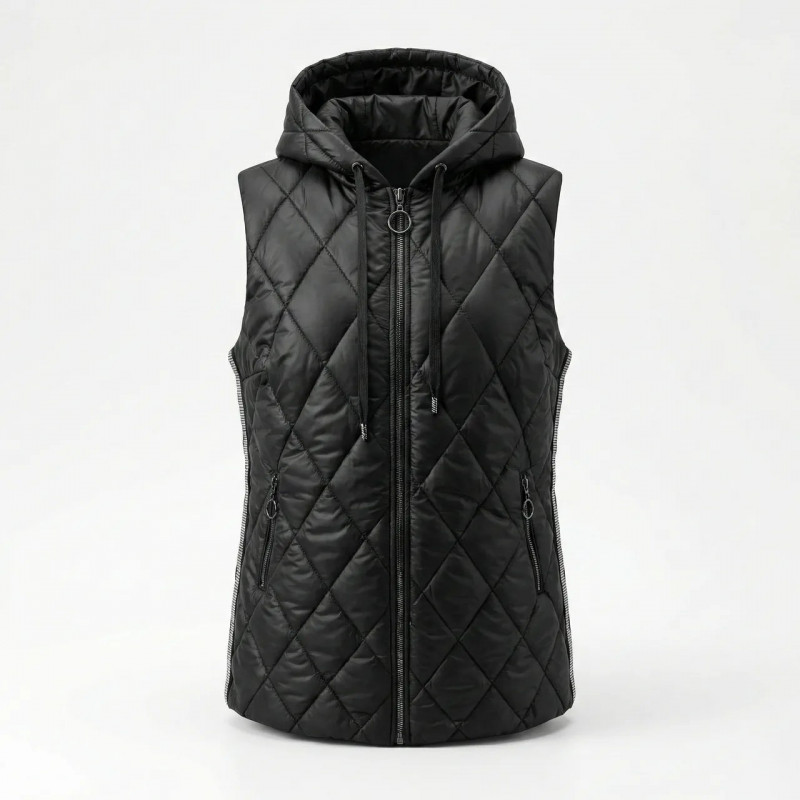 🛒 Ищете надежный товар? Вы можете купить Женская теплая жилетка с капюшоном Черная (ромб). Стеганая безрукавка со стразами 46-54 в нашем интернет-магазине Shtyrman. Гарантия качества и быстрая доставка по всей Украине!