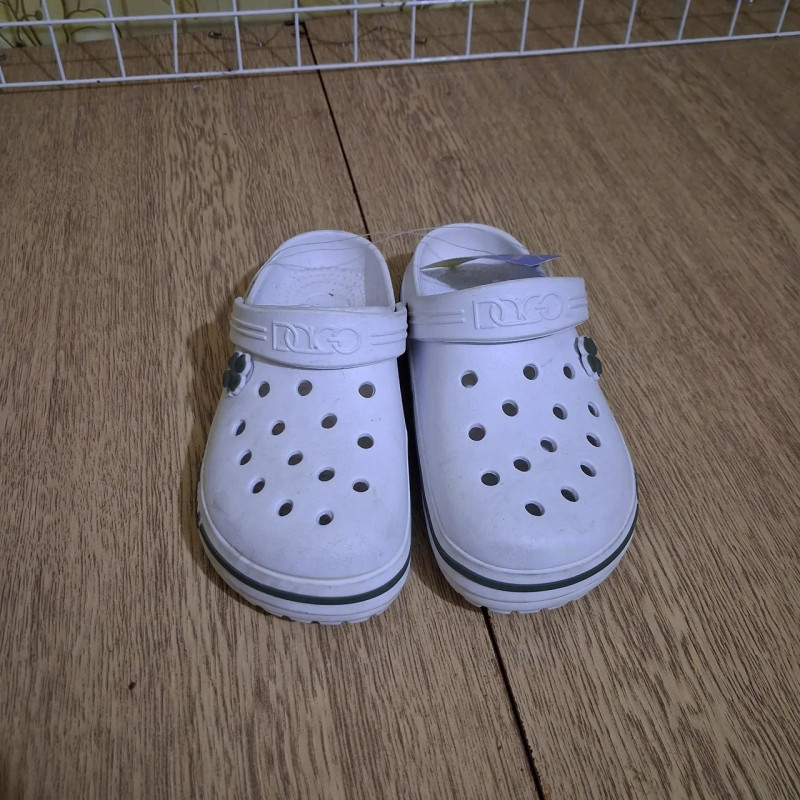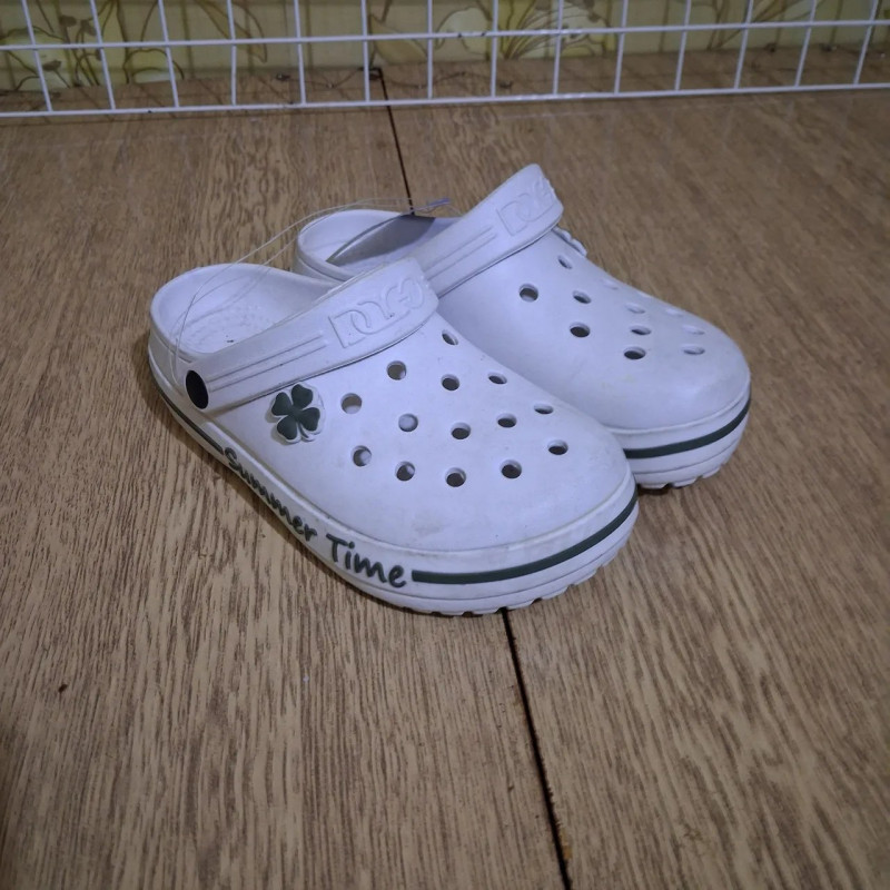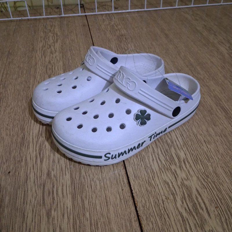 Белоснежные женские сабо от фабрики Dago. Стильная надпись "Summer Time" на подошве. Декор в виде четырехлистного клевера. Легкие, удобные, с поворотной лямкой. Размеры 36-41. Полное описание: Встречайте лето с позитивом в новых сабо Dago Style "Summer Time"! Эта модель создана для тех, кто любит лаконичность с интересными деталями. Белый цвет идеально подчеркивает загар, а контрастная полоска на подошве добавляет спортивного шика. Главная "фишка" модели — надпись "Summer Time" (Летнее время) рукописным шрифтом и кнопка-джиббитс в виде четырехлистного клевера на удачу. Особенности: Дизайн: Молодежный принт и аккуратный декор делают их стильными, но не перегруженными. Материал: Изготовлены из гипоаллергенной пены EVA — они не впитывают запахи, легко моются и мгновенно сохнут. Комфорт: Массажная стелька стимулирует кровообращение стопы в течение дня. Универсальность: Подходят для пляжа, бассейна, а также для медицинских работников и поваров (белый цвет). Характеристики: Производитель: Dago Style (Украина) Материал: Пена (EVA) Цвет: Белый Декор: Надпись "Summer Time", клевер Размеры: 36-41
