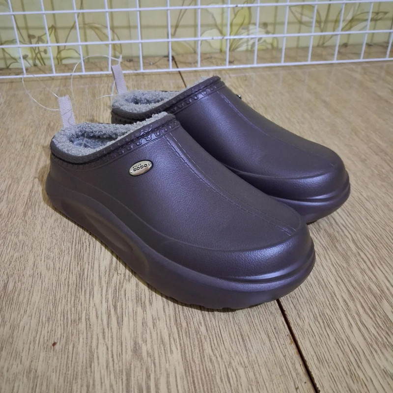 Удобные и практичные женские сабо от украинского бренда Dago Style — это незаменимая обувь для холодного времени года. Модель выполнена в благородном коричневом (бронзовом) цвете с легким перламутровым отливом. Основа изготовлена методом цельного литья из пены ЭВА, что делает обувь полностью водонепроницаемой и невероятно легкой. Внутренняя часть утеплена густым светлым искусственным мехом (под овчину), который обеспечивает отличную теплоизоляцию и комфорт даже в морозные дни. Сабо имеют удобную колодку и немного приподнятый задник, который хорошо фиксирует стопу. Модель декорирована фирменной металлической кнопкой с логотипом бренда. Это идеальный выбор для работы в саду, быстрого выхода во двор, прогулок с собакой или в качестве теплой сменной обуви для работы в холодных помещениях. Подошва устойчива к износу и имеет противоскользящий протектор. Характеристики: Производитель: Dago Style (Украина) Сезон: Зима / Холодная осень-весна Материал верха: Пена ЭВА (EVA) — влагостойкая Материал подкладки: Искусственный мех (светлый) Цвет: Коричневый / Бронзовый Размеры: 36-41 Особенности: Очень легкие, легко моются