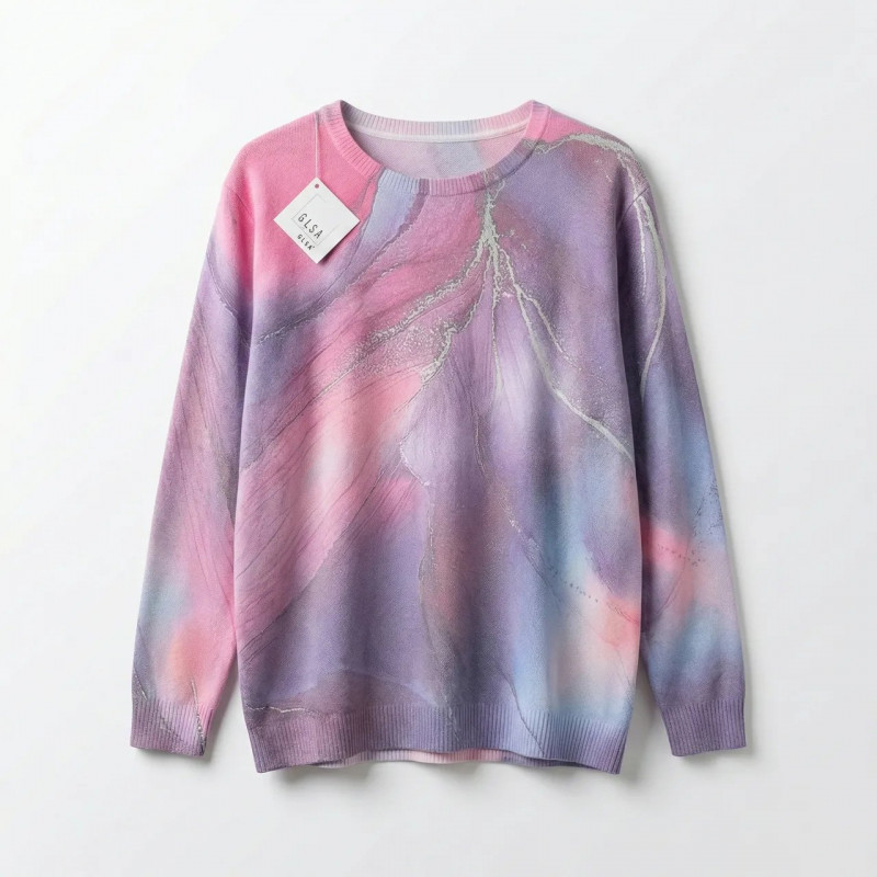 Женский джемпер G.L.S.A с мраморным принтом, яркая кофта розово-фиолетовая, нарядный свитер абстракция
