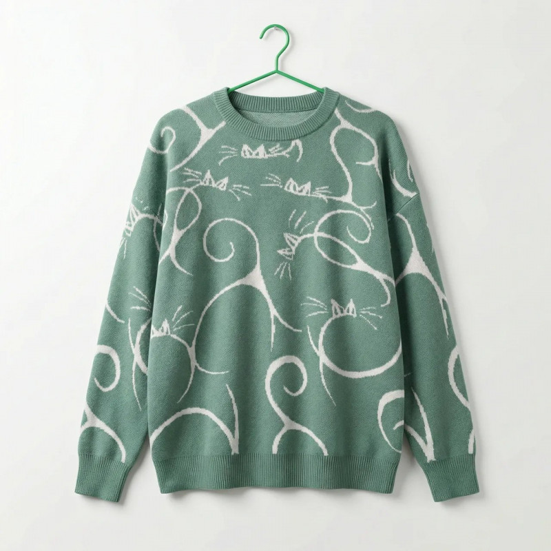 🛒 Ищете надежный товар? Вы можете купить Женский вязаный свитер с котами, оверсайз джемпер цвет шалфей, теплая кофта с принтом кошек в нашем интернет-магазине Shtyrman. Гарантия качества и быстрая доставка по всей Украине!
