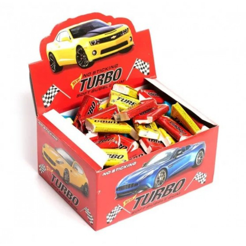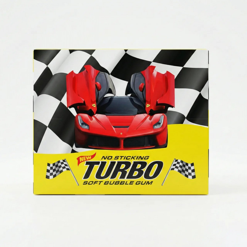 Turbo — это больше, чем жвачка. Каждая пластинка упакована с ярким вкладышем, на котором изображены легендарные автомобили. Коллекционируйте, обменивайтесь, соревнуйтесь с друзьями — точно так же, как это было в детстве. Упаковка 100 штук идеальна для семьи, праздников или небольшого бизнеса.