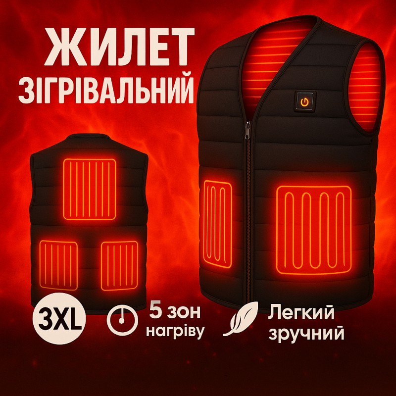 | Название | Жилет (3XL) согревающий зимний с USB подогревом унисекс черный |