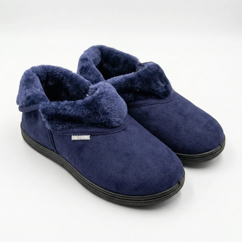 Максимальное тепло и комфорт для ваших ножек! Женские домашние тапочки-сапожки от бренда Dago Home — это идеальное решение для холодного времени года. Благодаря высокому фасону ("бабуши"), они надежно согревают не только стопу, но и щиколотку, даря ощущение полного уюта. Верх выполнен из мягкого текстиля под велюр (эко-замша) глубокого синего цвета, который смотрится стильно и дорого. Внутри сапожки полностью утеплены густым искусственным мехом. Гибкая и прочная подошва прошита по контуру, что гарантирует долговечность обуви. Эта модель станет отличным подарком для себя или близких. Характеристики: Материал верха: Текстиль (под велюр/замшу) Материал подкладки: Искусственный мех (густой и теплый) Подошва: ПВХ (прошитая, черного цвета) Тип: Закрытые (сапожки/бабуши) Цвет: Темно-синий Сезон: Зима / Холодная осень Размерная сетка: 36-41 Бренд: Dago Home (Украина)