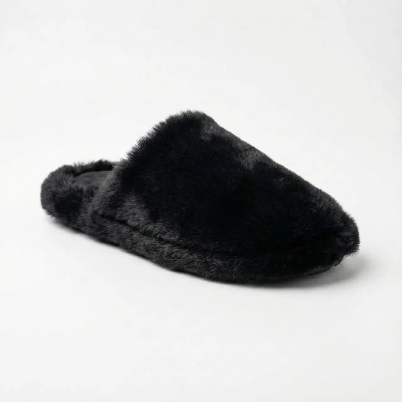 Роскошные черные тапки, полностью покрытые густым мехом. Модель мюли (без задника). Мягкие, теплые, приятные на ощупь. Гибкая подошва. Смотрятся дорого. Размеры 36-41. Эти черные меховые мюли — воплощение элегантности и домашнего уюта. В отличие от обычных тапочек, они выглядят как модельная обувь, только мягкая. Верх и стелька полностью выполнены из густого, шелковистого искусственного меха черного цвета, который переливается на свету. Они невероятно приятны к босой ноге. Надежная резиновая подошва (Kam-Lun) позволяет комфортно чувствовать себя на любом покрытии. Характеристики: Тип: Мюли / Меховые шлепанцы Материал: Искусственный мех (премиум качества) Цвет: Черный (Black) Подошва: Резина (противоскользящая) Размеры: 36-41