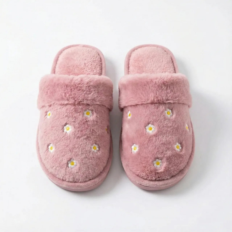 | Название | Женские плюшевые комнатные тапочки Розовые с ромашками (40-41). Мягкие домашние тапочки меховые 41 |