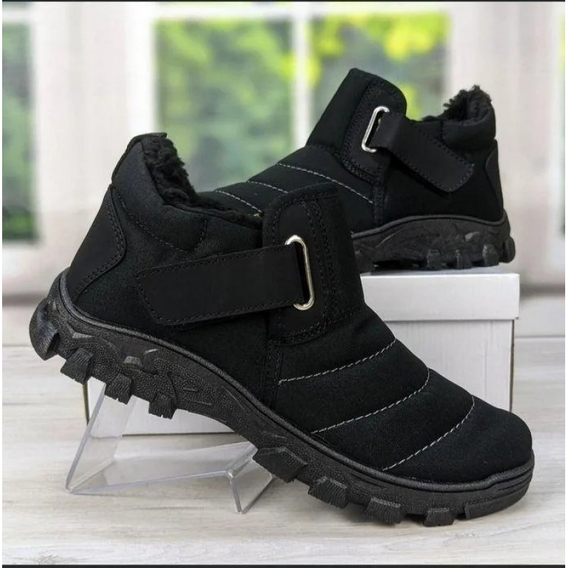 Мужские зимние дутики на липучке — максимальное удобство и тепло! Эта модель — идеальное решение для мужчин, которые ищут простую, надежную и теплую обувь на каждый день. Благодаря низкому голенищу эти ботинки очень удобны для водителей, а также отлично подходят для работы или прогулок. Почему эта пара стоит внимания: Двойное удобство: Модель оснащена и молнией (с внутренней стороны), и широкой липучкой (спереди). Это позволяет идеально отрегулировать обувь по полноте ноги и подъему. Тепло: Внутри — густой эко-мех, который плотно укутывает ногу и сохраняет тепло даже в мороз. Защита: Верх изготовлен из прочного водоотталкивающего материала с аккуратной прострочкой. Носок и пятка усилены вставками из эко-кожи для защиты от износа. Подошва: Массивная рельефная подошва (протектор) обеспечивает отличное сцепление со скользкой поверхностью и изолирует от холода. Характеристики: Сезон: Зима. Цвет: Черный. Материал верха: Текстиль (плащевка) + эко-кожа. Утеплитель: Эко-мех. Застежка: Молния + Липучка. Размеры: 41, 42, 43, 44, 45. 🥾 Заказывайте мужские дутики на липучке — комфорт и тепло гарантированы!