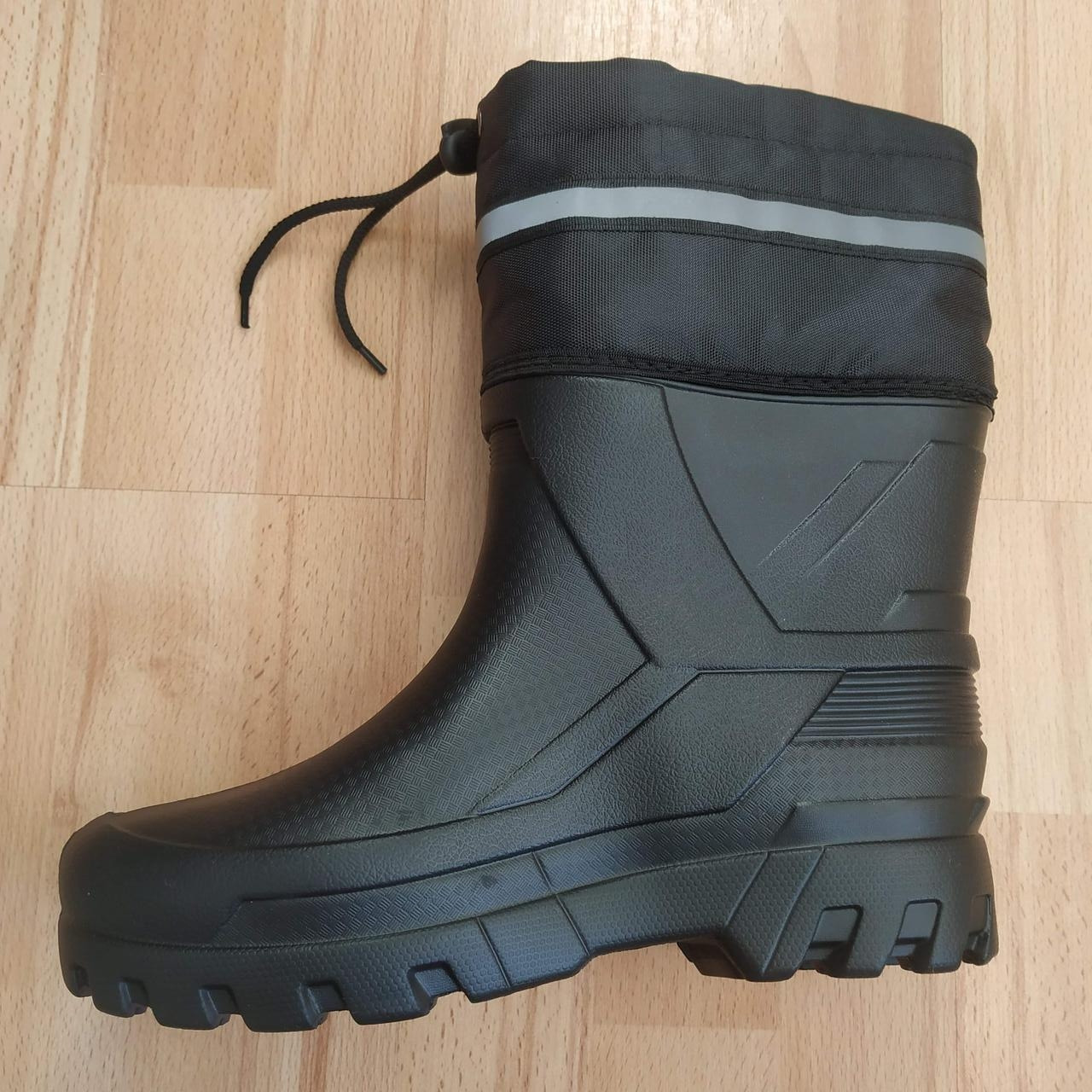 Зносостійкі якісні чоботи зі спіненого матеріалу ЕВА, зроблені суцільно литим способом, що гарантує тривалість носіння і прирівнює ймовірність промокання чобіт до нуля. Чоловічі чоботи з ЕВА забезпечать тепло та комфорт ваших ніг упродовж тривалого часу. ЕВА — матеріал, який не пропускає холод і вологу, не промокає, є найбільш зносостійким із себе таких, простий у догляді та доступний за ціною. Рибальські чоботи популярні і в домашньому господарстві, є універсальним взуттям. Легко миються й миттєво висихають.