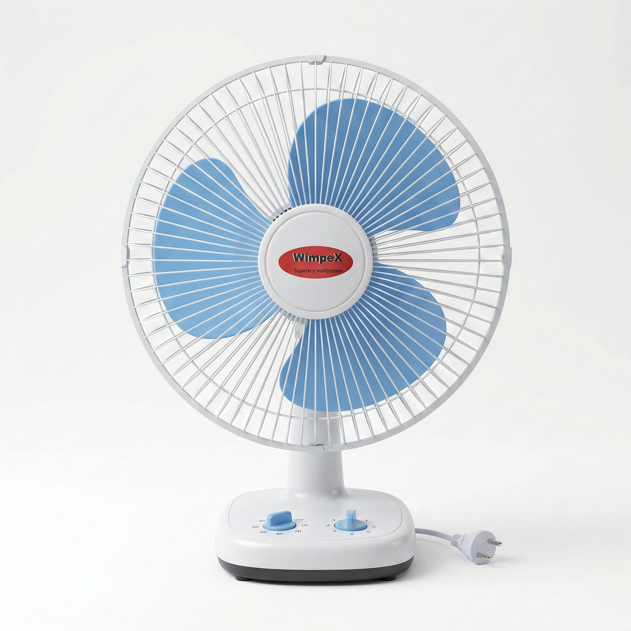 Врятуйтеся від літньої спеки за допомогою надійного та компактного настільного вентилятора Wimpex. Ця модель — ідеальне рішення для створення комфортного мікроклімату на вашому робочому місці, в офісі або вдома біля ліжка. Вентилятор має класичний дизайн у приємних біло-блакитних тонах, який гармонійно впишеться у будь-який інтер'єр.