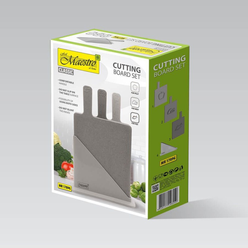 0 Главная Посуда и аксессуары Разделочные доски Previous product  Next product  Набор разделочных досок MR-1789G Удобная ручка Не скользит по поверхности стола Возможность использования с обеих сторон Не притупляет ножи Возможность испо