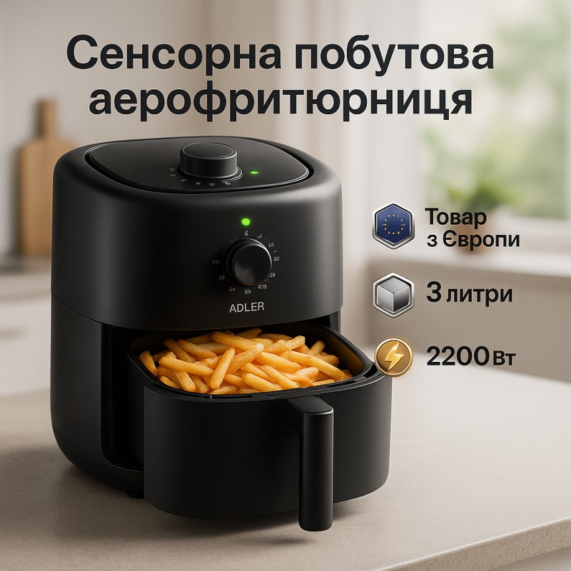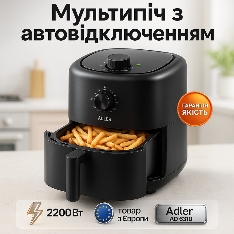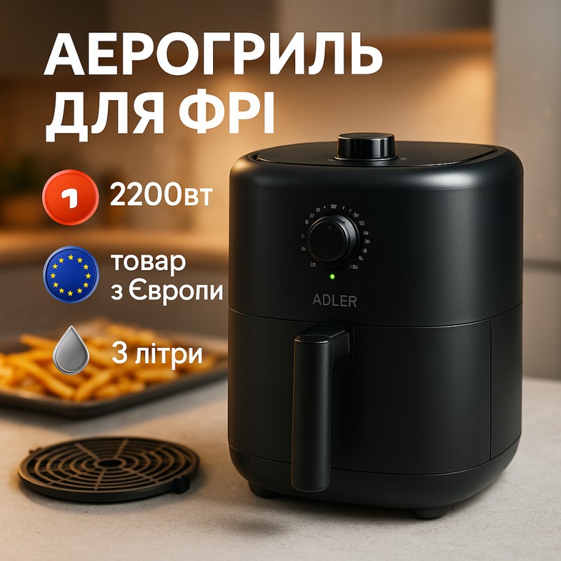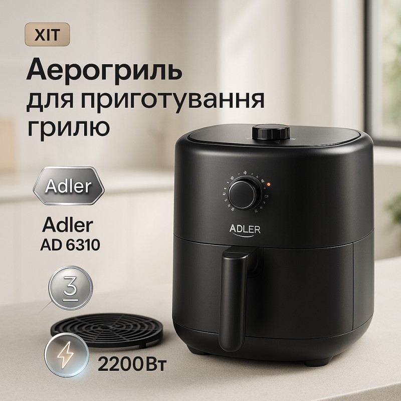 НазваАэрофритюрница аэрогриль Adler AD 6310 2200Вт 3 литра съемная решетка автоматическое отключение
