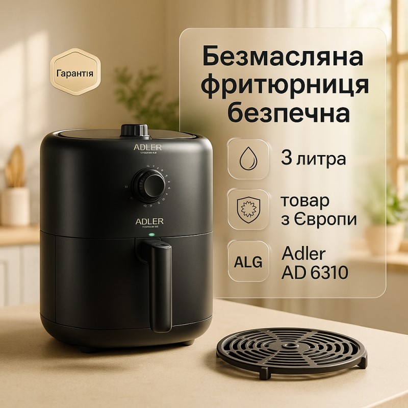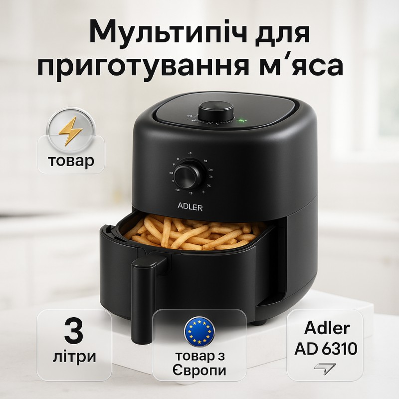 Аэрофритюрница аэрогриль Adler AD 6310 2200Вт 3 литра съемная решетка автоматическое отключение можна замовити в інтернет-магазині Shtyrman. Перевіряйте модель, виробника, наявність і характеристики перед покупкою.