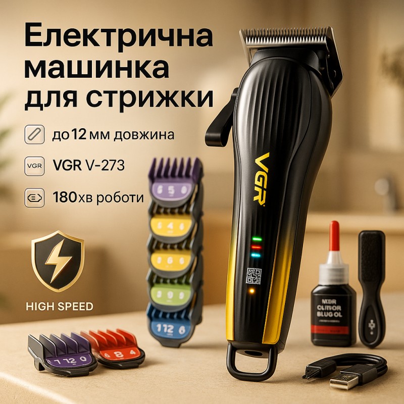 | Назва | Аккумуляторная машинка для стрижки VGR V-273 GOLD |