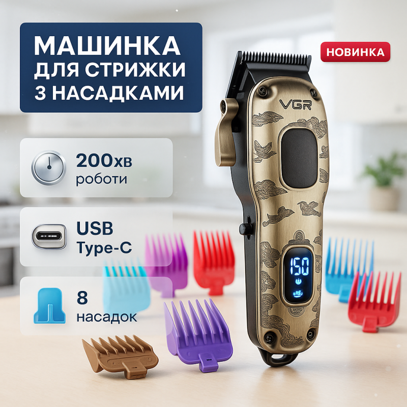 | Назва | Акумуляторна машинка для стрижки VGR V-027 |