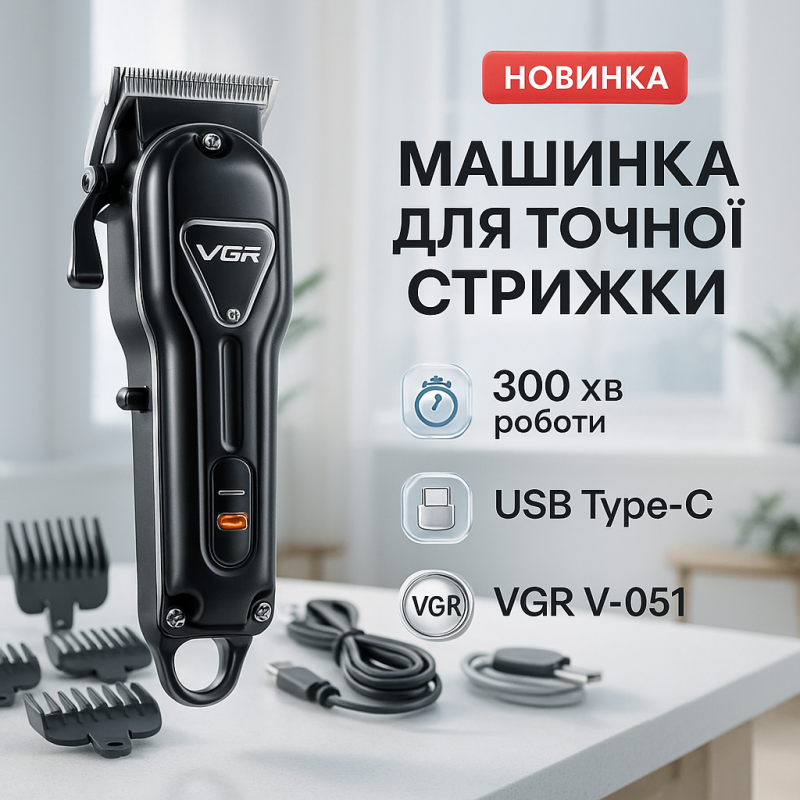 | Назва | Акумуляторна машинка для стрижки VGR V-051 |