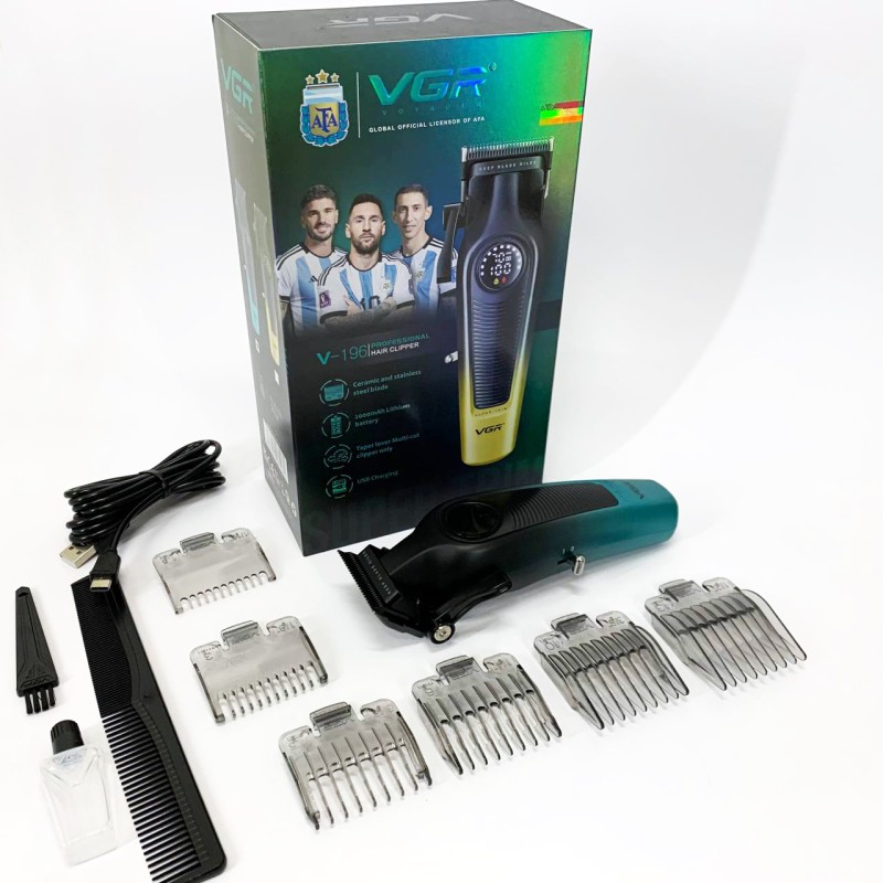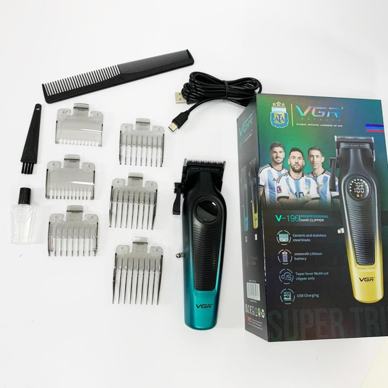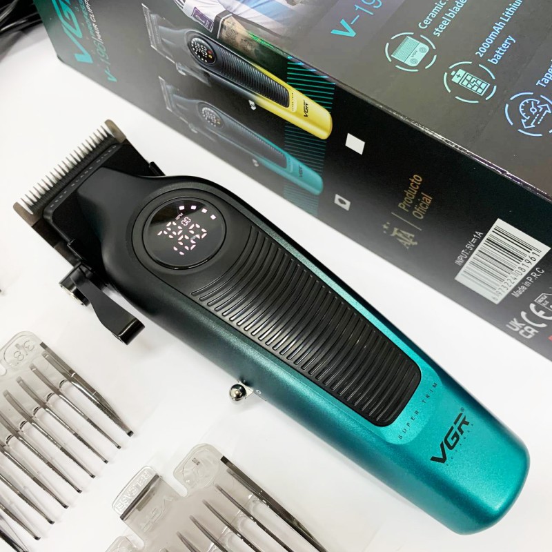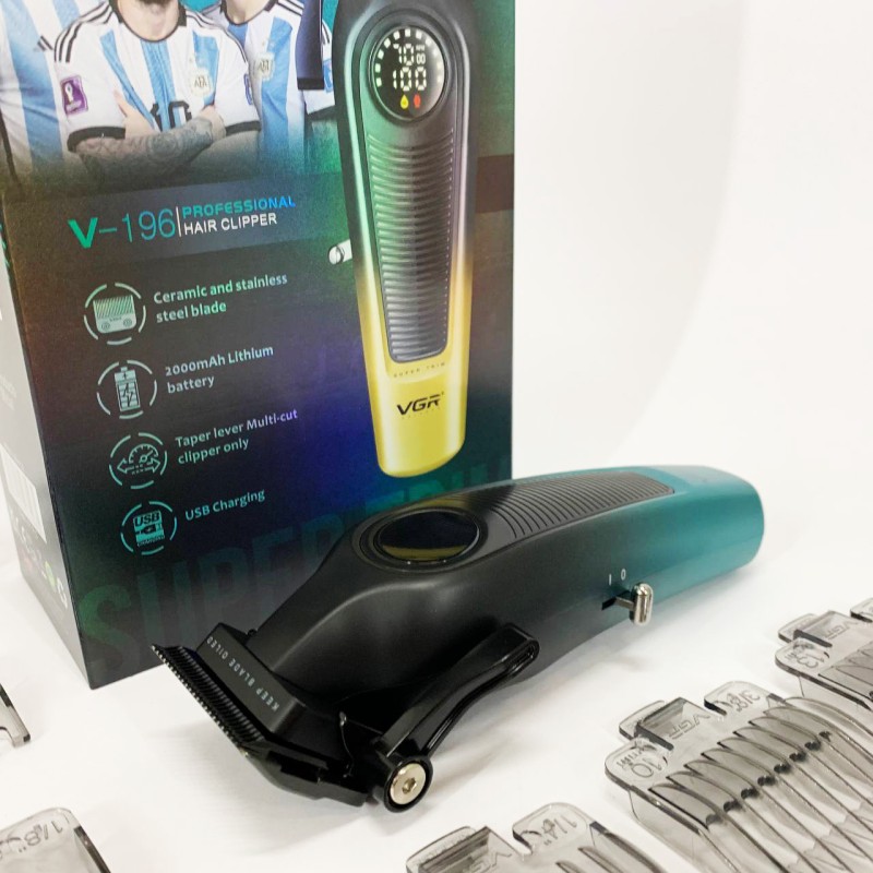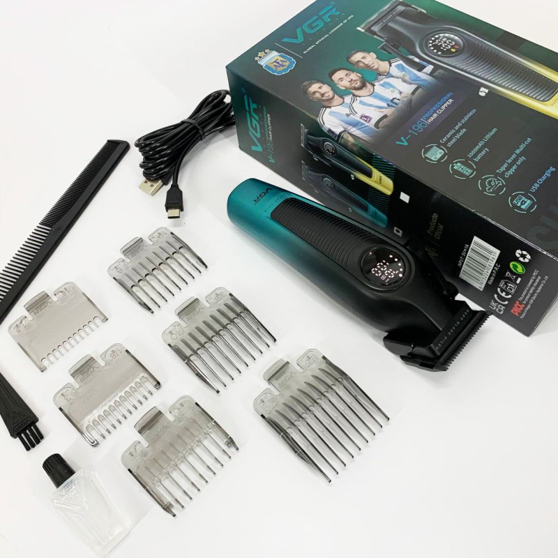 У комплект входять 6 насадок, що дозволяють точно налаштовувати довжину зрізу від 1.5 до 13 мм для створення різних стилів та форм. LED-дисплей відображає заряд акумулятора, режим роботи, нагадування про необхідність мастила та інші важливі параметри, забезпечуючи зручність та контроль у процесі використання. Бездротова конструкція дає повну свободу рухів, а висока продуктивність та універсальність роблять VGR V-196 ідеальним інструментом для тих, хто цінує якість, функціональність та стиль.